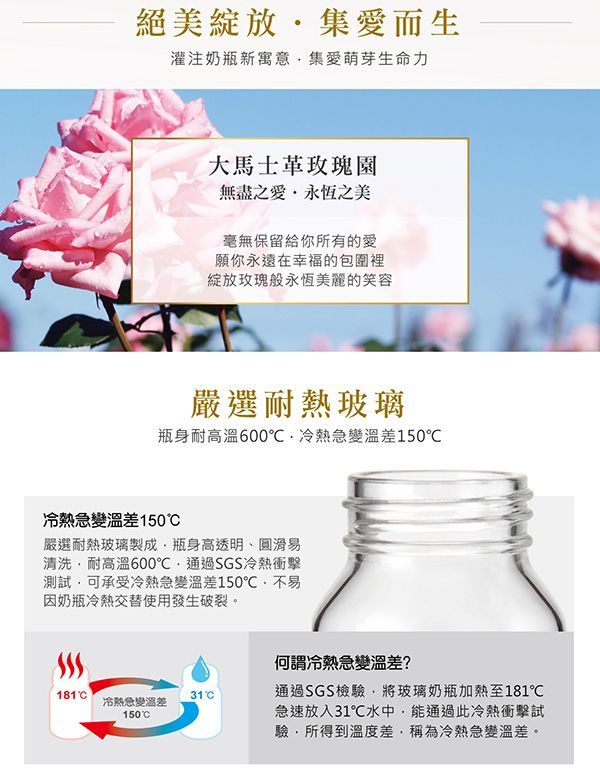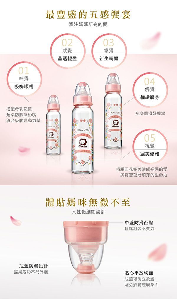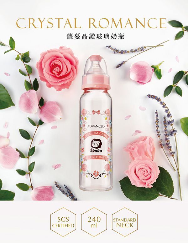 直到遇見了「Simba 小獅王辛巴 蘿蔓晶鑽標準玻璃大奶瓶-附標準十字奶嘴-大馬士革玫瑰園 (S [0個月新生兒])-240mL」,